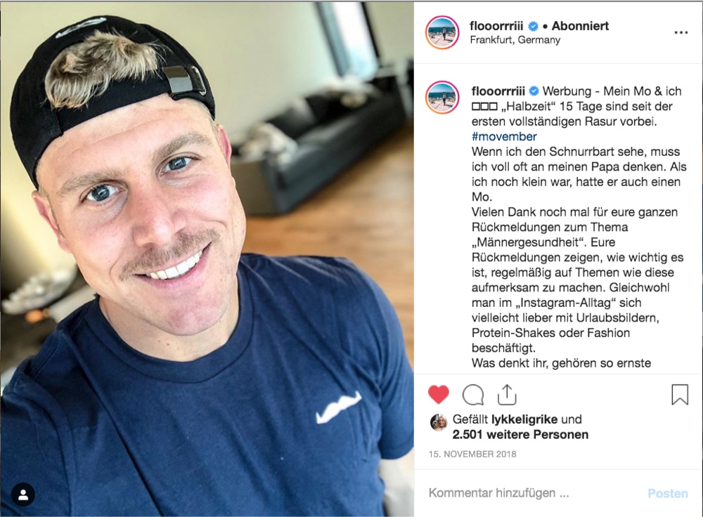 Männern macht es Spaß, sich gegenseitig herauszufordern. Deshalb machen wir aus dem Movember eine echte Challenge: „Fordere einen Kumpel heraus, sich einen Monat lang einen Schnurrbart wachsen zu lassen – werdet #wilkinsonmovemberbuddies!“ Die Influencer-friends Jan Körbeeer & Flori werden zum Gesicht der Kampagne und motivieren zum Shave down, Schnurrbart, Spenden sammeln und über Männergesundheit zu sprechen. Video- und Fotocontent erreicht die Zielgruppe auf Social Media und generiert Involvement und Reichweite für die Kampagne.